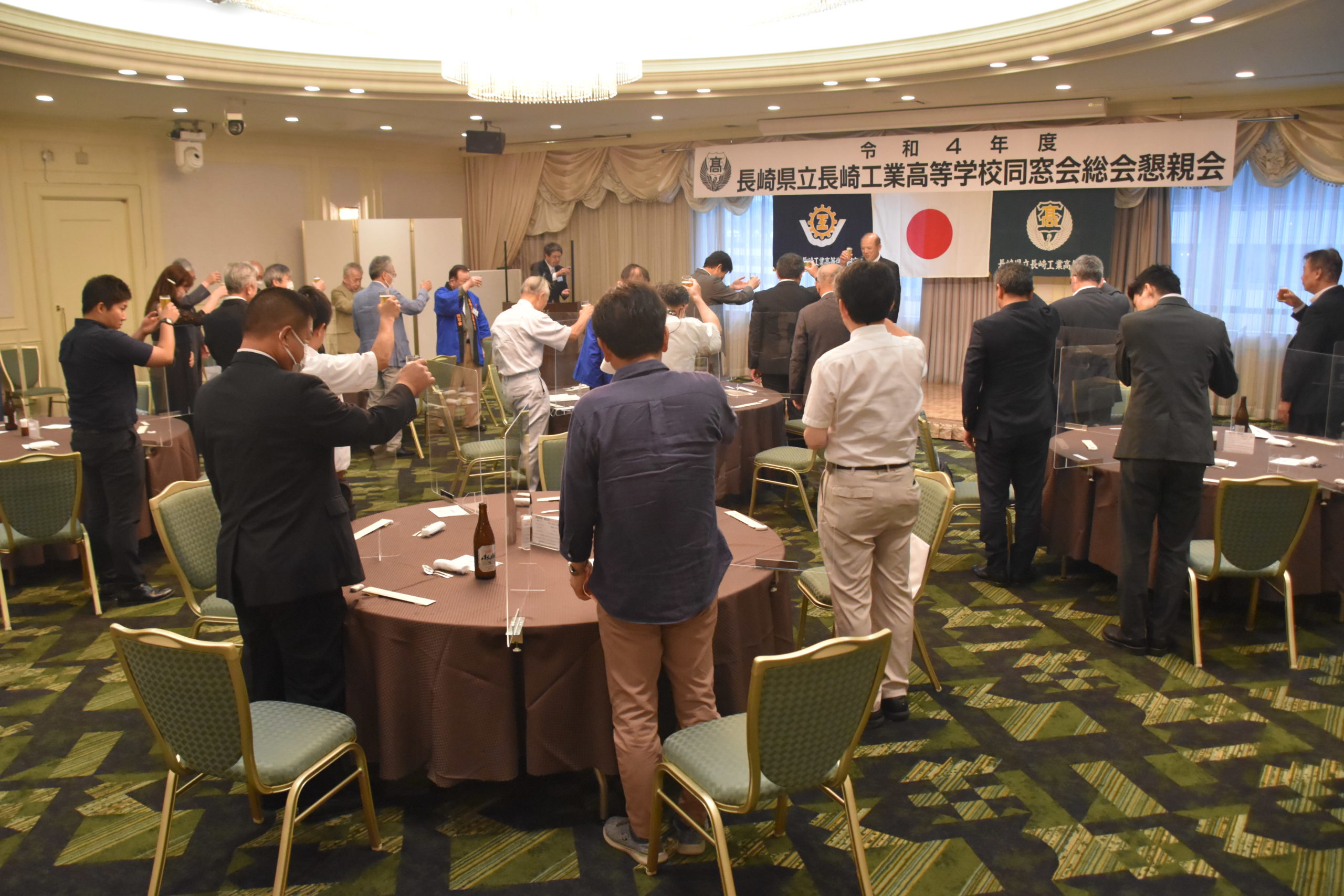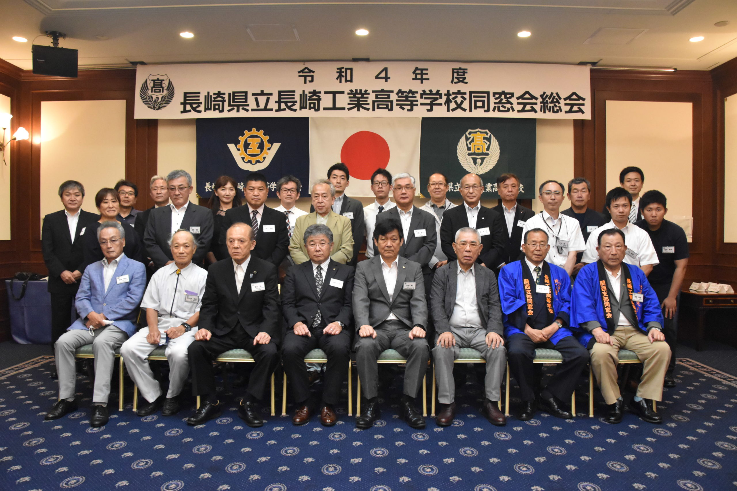 令和4年6月25日(土)、サンプリエールにて同窓会総会・懇親会を実施しました。2年前はコロナウィルスの影響で実施できませんでしたが、今年はいつも通り各支部から参加していただきました。関東支部からは木戸会長、永田様、関西支部からは林田会長、西田様、九州支部からは天ヶ瀬会長、杉本様です。総会は山田会長の挨拶から始まり、北島校長、林田会長、天ヶ瀬会長とお言葉をいただきました。その後、議事が滞りなく行われ、最後に集合写真を撮影して終了しました。各支部の総会は現在検討中ということですが、九州、関西、関東と本部総会の影響もあり、実施される可能性が高いのではないでしょうか。