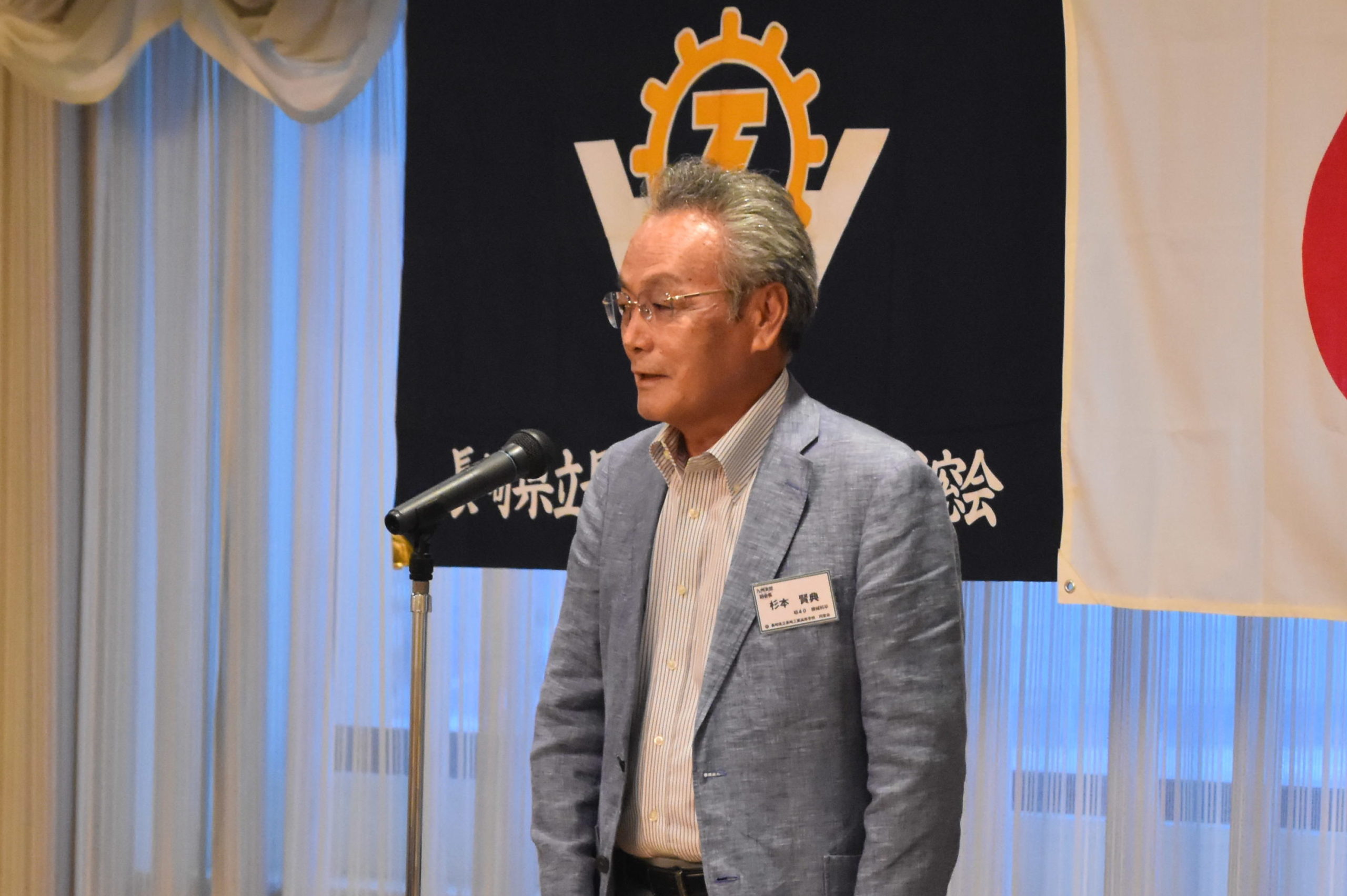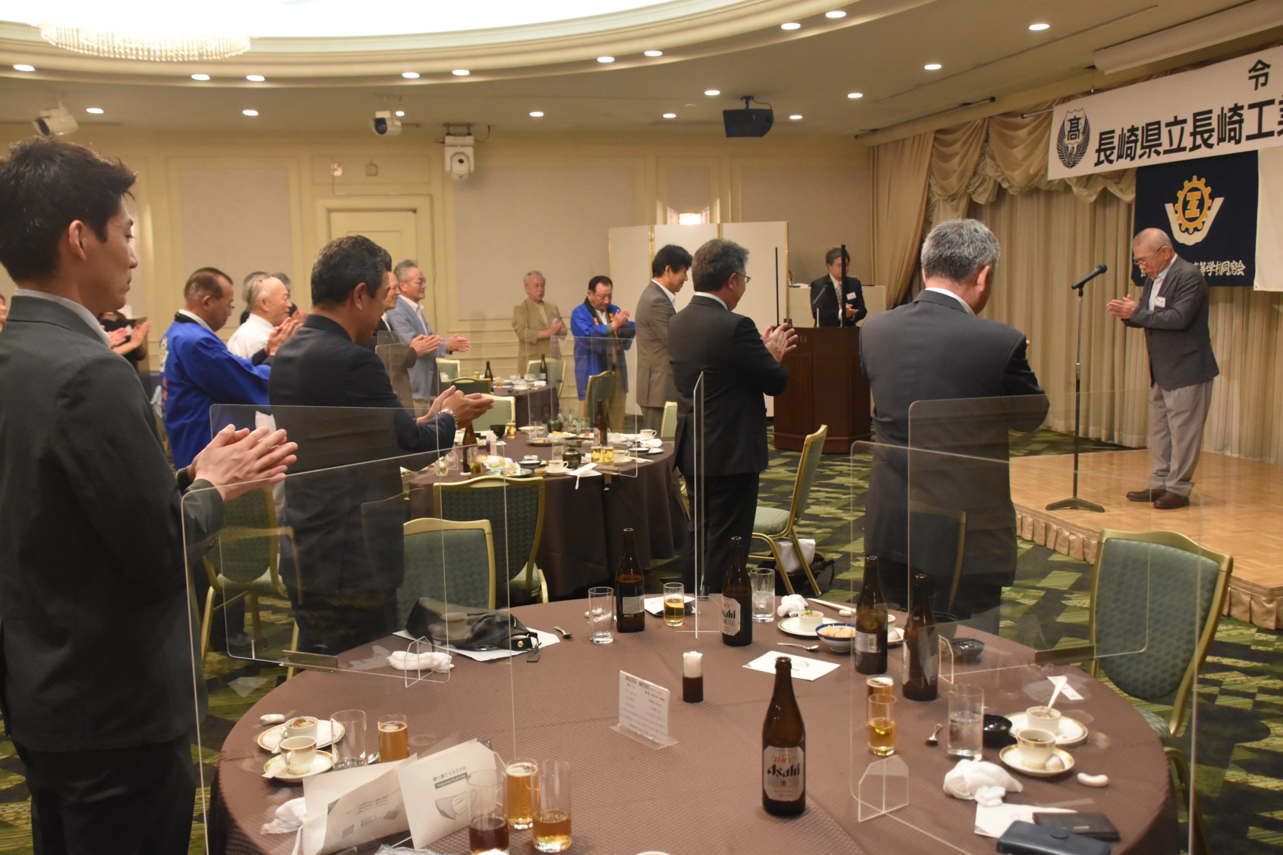 懇親会でも山田会長の挨拶から始まり、中山様や永田様、西田様、杉本様、峰様、五島様と多くの方々からお言葉を頂戴しました。林田会長のPRタイムもあり、最後に木戸会長の1本締めで会はお開きとなりました。会を通して、高総体での活躍が多く挙げられており、7月末から四国で行われるインターハイでの本校バスケットボール部、女子ヨット部、フェンシング部男女の活躍が期待されていました。